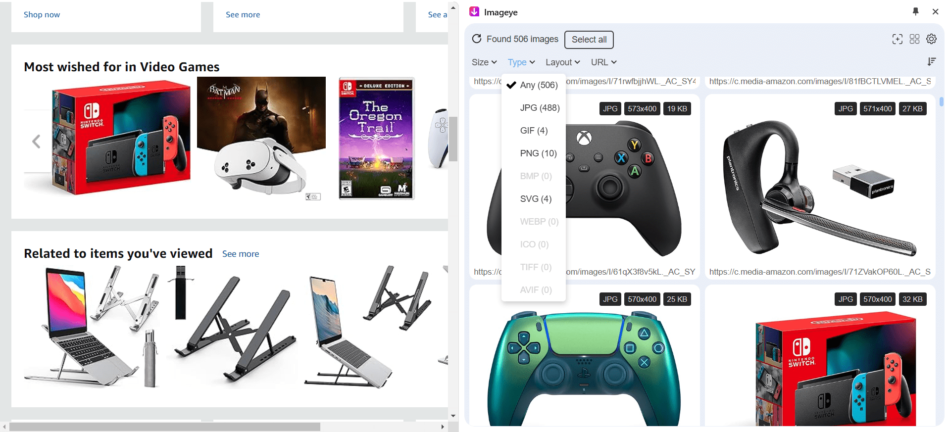 Imageye is a browser extension that makes downloading images incredibly easy. Whether it’s a single image or multiple images on a page, this extension scans the webpage and displays all the images it finds in a clear grid view. From there, you can choose specific images to download or save them all at once.